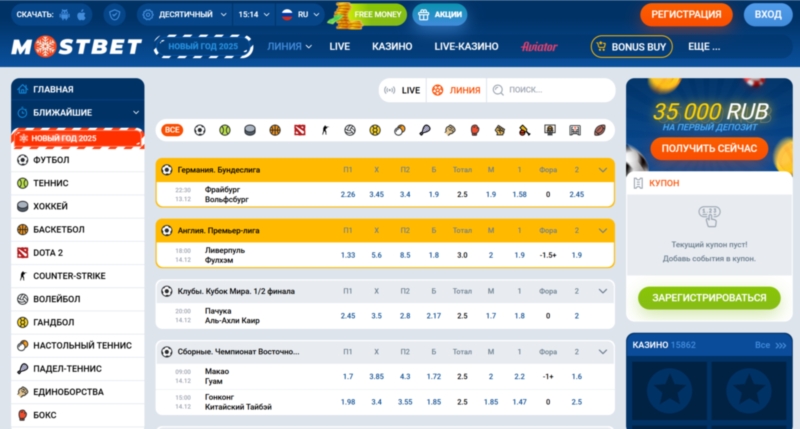 - Ставки на спорт: Мостбет предлагает обширный перечень спортивных событий, на которые можно делать ставки, от футбола до тенниса и киберспорта.